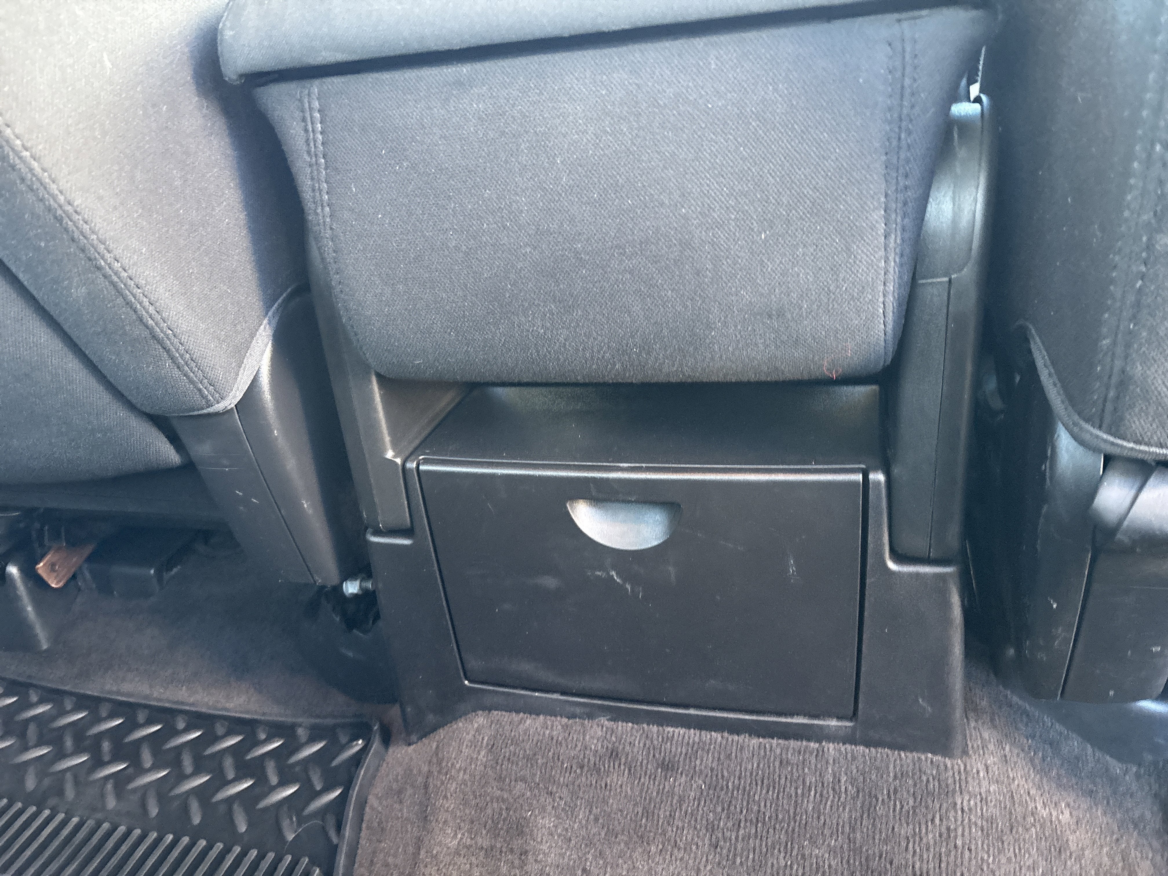 - Seats, front 40/20/40 split-bench, 3-passenger, driver and front passenger manual reclining center fold-down armrest with storage, lockable storage compartment in seat cushion (includes auxiliary power outlet), adjustable outboard head restraints and storage pockets on Extended and Crew Cab models